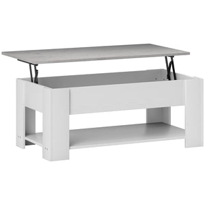 Lift Top Coffee Table with Hidden Storage Compartment and Open Shelf, Center Table for Living Room, White