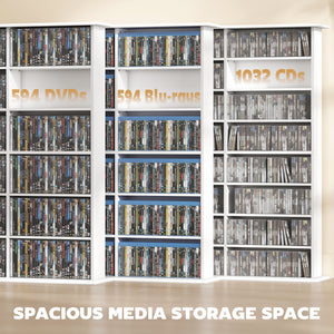 Media Storage Cabinet, 8-Tier DVD Shelf with 18 Adjustable Shelves, Holds 1032 CDs, 594 DVDs or Blu-rays, White