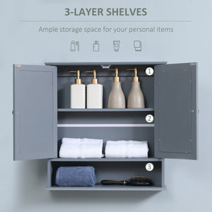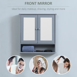 Medicine Cabinet, Wall-Mounted Bathroom Mirror Cabinet with Double Doors, Open Shelf, and Adjustable Shelf, Modern Bathroom Wall Cabinet, Grey