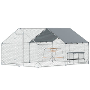 Metal Chicken Coop Run w/ Waterproof Cover, Nesting Box, Roosting Bars, for Outdoor Backyard, 9.8 x 13.1 x 6.4 ft
