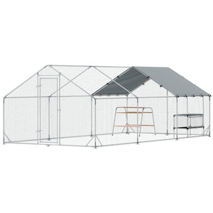 Metal Chicken Coop Run w/ Waterproof Cover, Nesting Box, Roosting Bars, for Outdoor Backyard, 9.8 x 19.7 x 6.4 ft