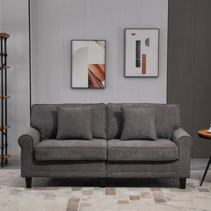 Modern 3 Seater Sofa, Corduroy Fabric 3 Seater Couch with Pine Wood Legs and Rolled Armrests for Living Room, Light Grey
