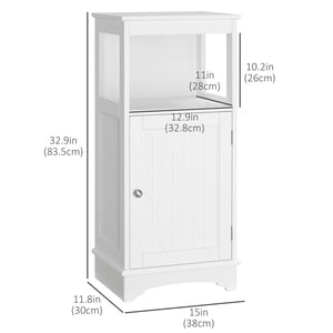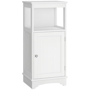 Modern Bathroom Floor Cabinet with Open Shelf, Freestanding Storage Organizer Unit with Single Door for Home Office, Living Room, White