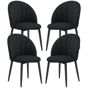 Modern Dining Chairs Set of 4, Upholstered Dining Room Chairs with Metal Legs, Shell Backrest, Padded Seat, Black