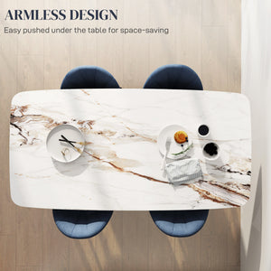 Modern Dining Chairs Set of 4, Upholstered Dining Room Chairs with Metal Legs, Shell Backrest, Padded Seat, Blue