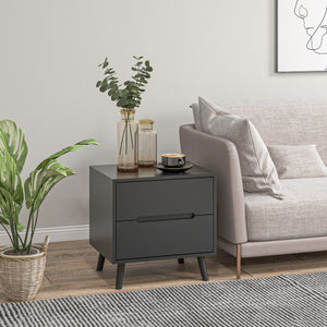 Do you need more storage space in your bedroom or other living areas? If so, this Homivas nightstand with storage is the solution—featuring two spacious drawers and a handy top surface for your essentials. Show off your modern style with a black finish, minimalist lines, and elegant cut-out handles. Crafted from robust particle board and pine legs, this bedside table offers ample storage and chic vibes for any bedroom.