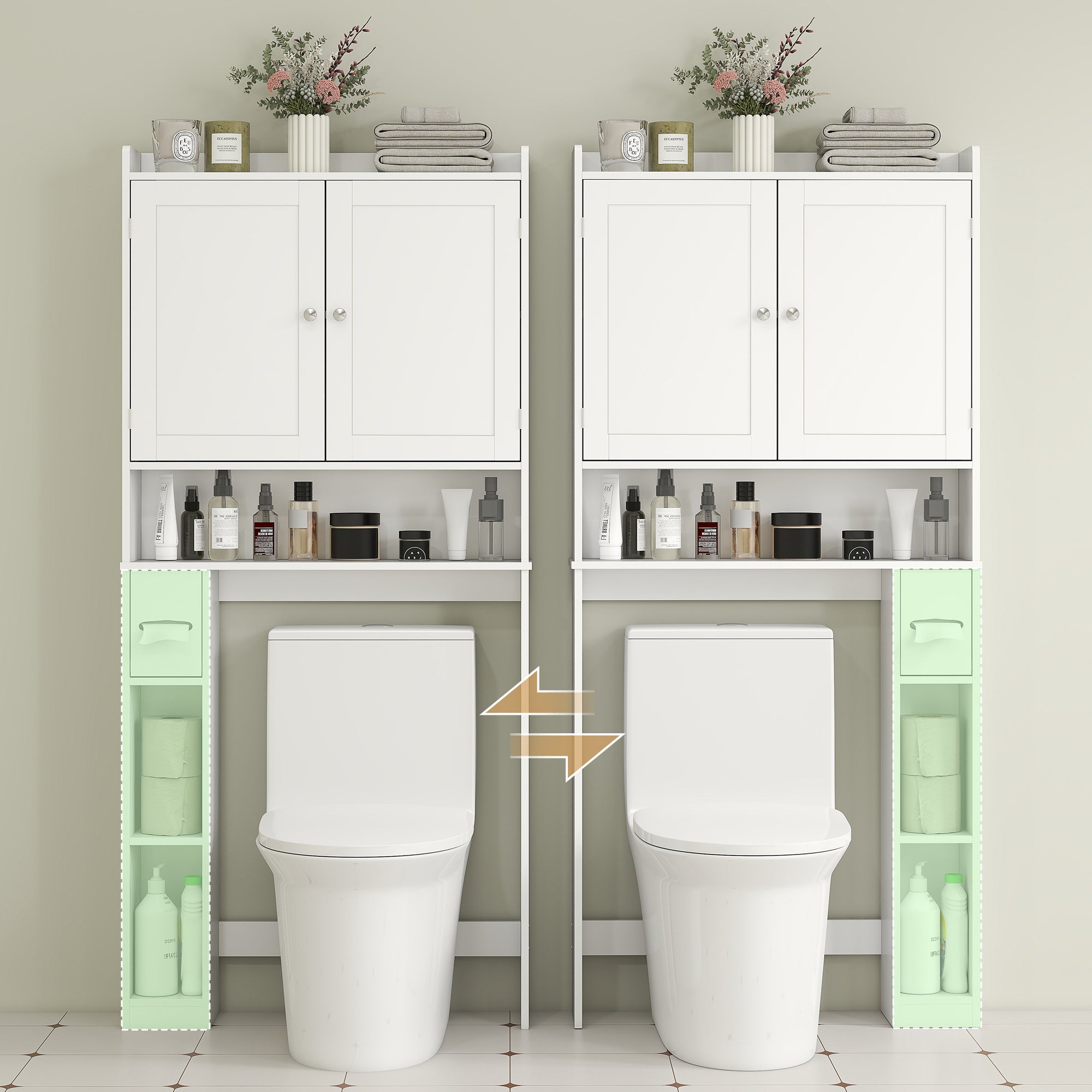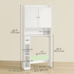 Modern Over the Toilet Storage Cabinet with 2 Doors, Above Commode Storage Cabinet with Toilet Paper Holder, White