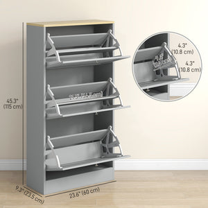 Modern Shoe Storage with 3 Flip Drawers and Adjustable Shelves, Shoe Cabinet Organizer for 12-18 Pairs of Shoes, Grey