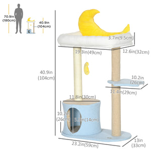 Moon Cat Tower for Indoor Cats with Teddy Fleece House Bed Scratching Post Hanging Toy Star Platform 41" Blue