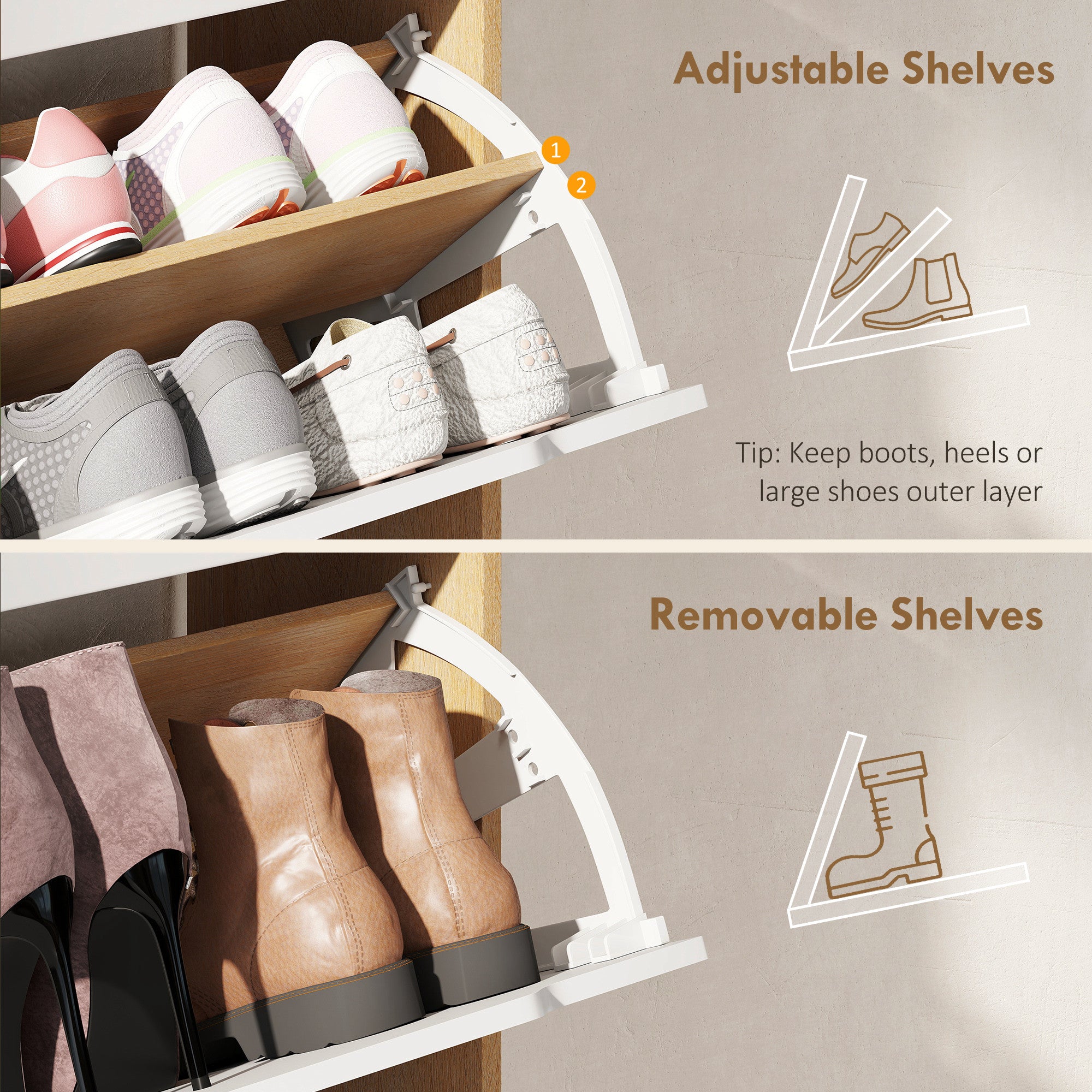 Narrow Shoe Cabinet for Entryway with 2 Flip Drawers, Top Drawer and Adjustable Shelves for 12 Pairs of Shoes, White