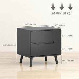 Do you need more storage space in your bedroom or other living areas? If so, these two Homivas nightstands with storage are the solution—featuring two spacious drawers and a handy top surface for your essentials. Show off your modern style with a black finish, minimalist lines, and elegant cut-out handles. Crafted from robust particle board and pine legs, these bedside tables offer ample storage and chic vibes for any bedroom.