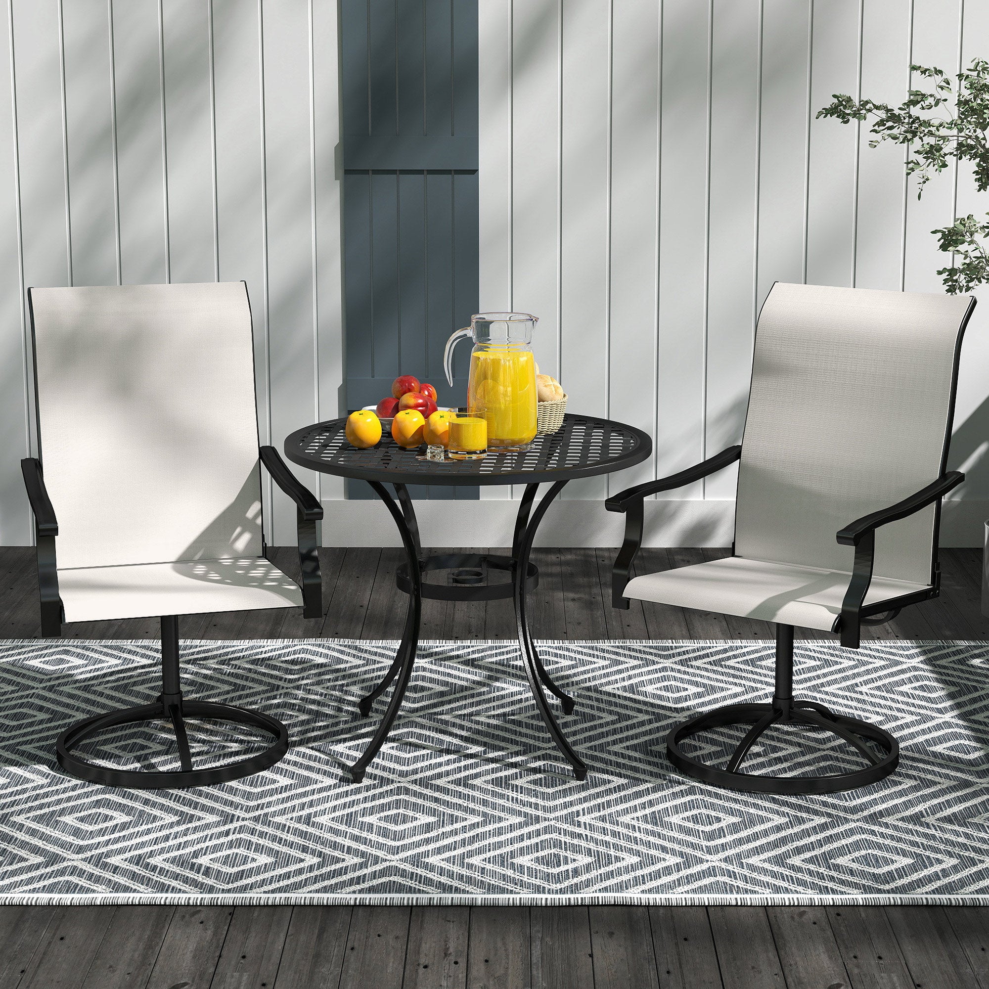 Enjoy the blend of style and function with the Homivas swivel patio chairs! Featuring a 360° swivel for effortless movement and breathable mesh fabric for cool, all-day comfort, the outdoor chairs will be your new outdoor favorite. Weather-resistant and easy to clean, it's built for patios, porches, or poolside lounging. Relax, chat, or soak up the sun—these outdoor swivel chairs have everything you need for unbeatable outdoor vibes!