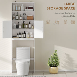 Over The Toilet Storage Cabinet, Freestanding 4-Tier Bathroom Organizer with Adjustable Shelf and 2 Doors, White
