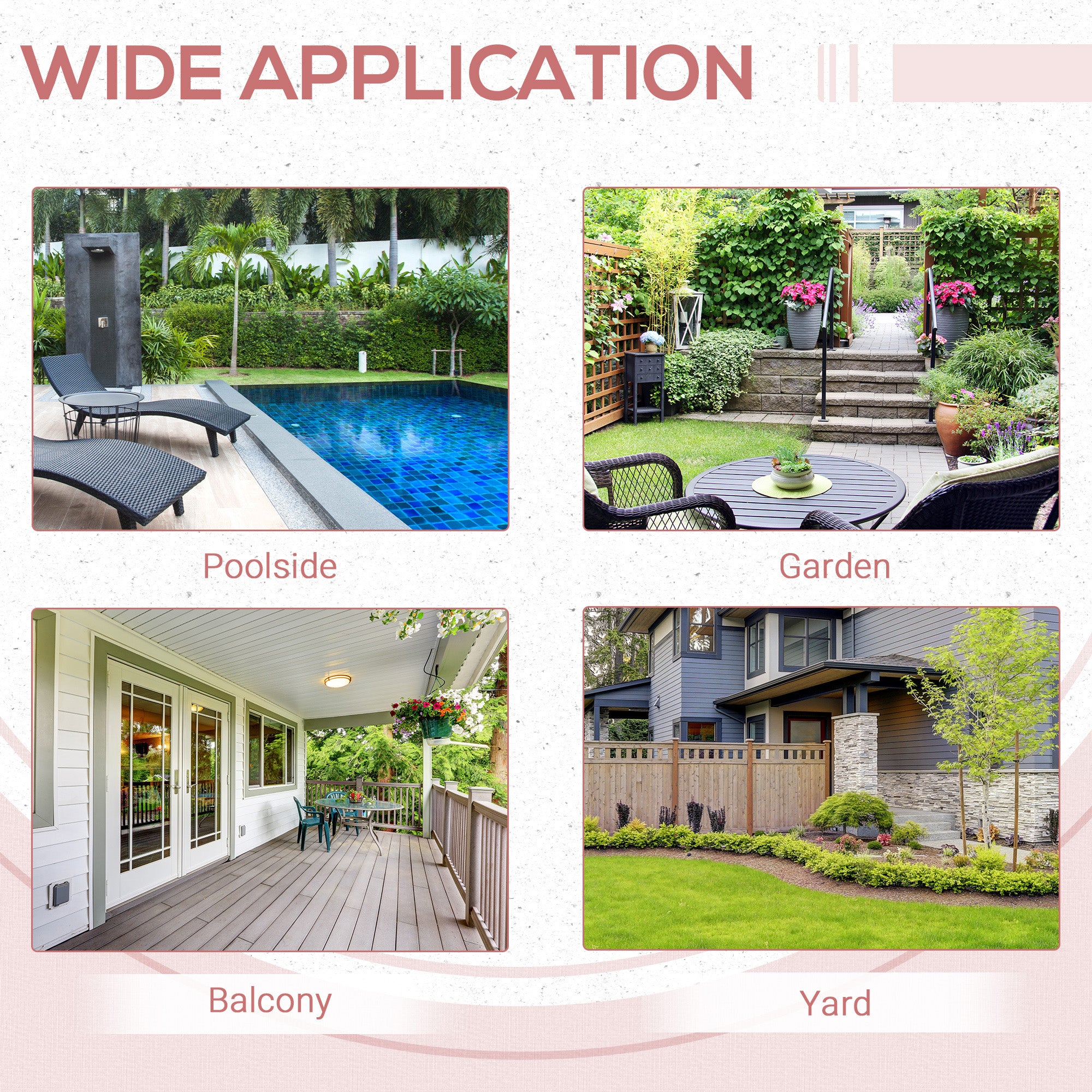 - • Suitable for anywhere around your patio, poolside, balcony, backyard and more