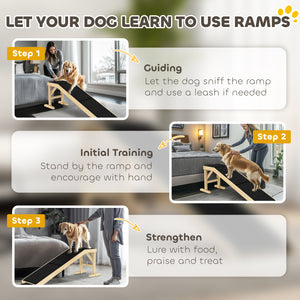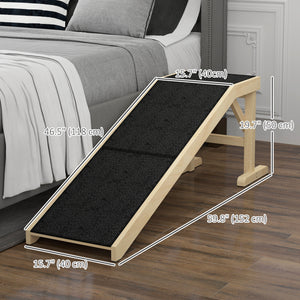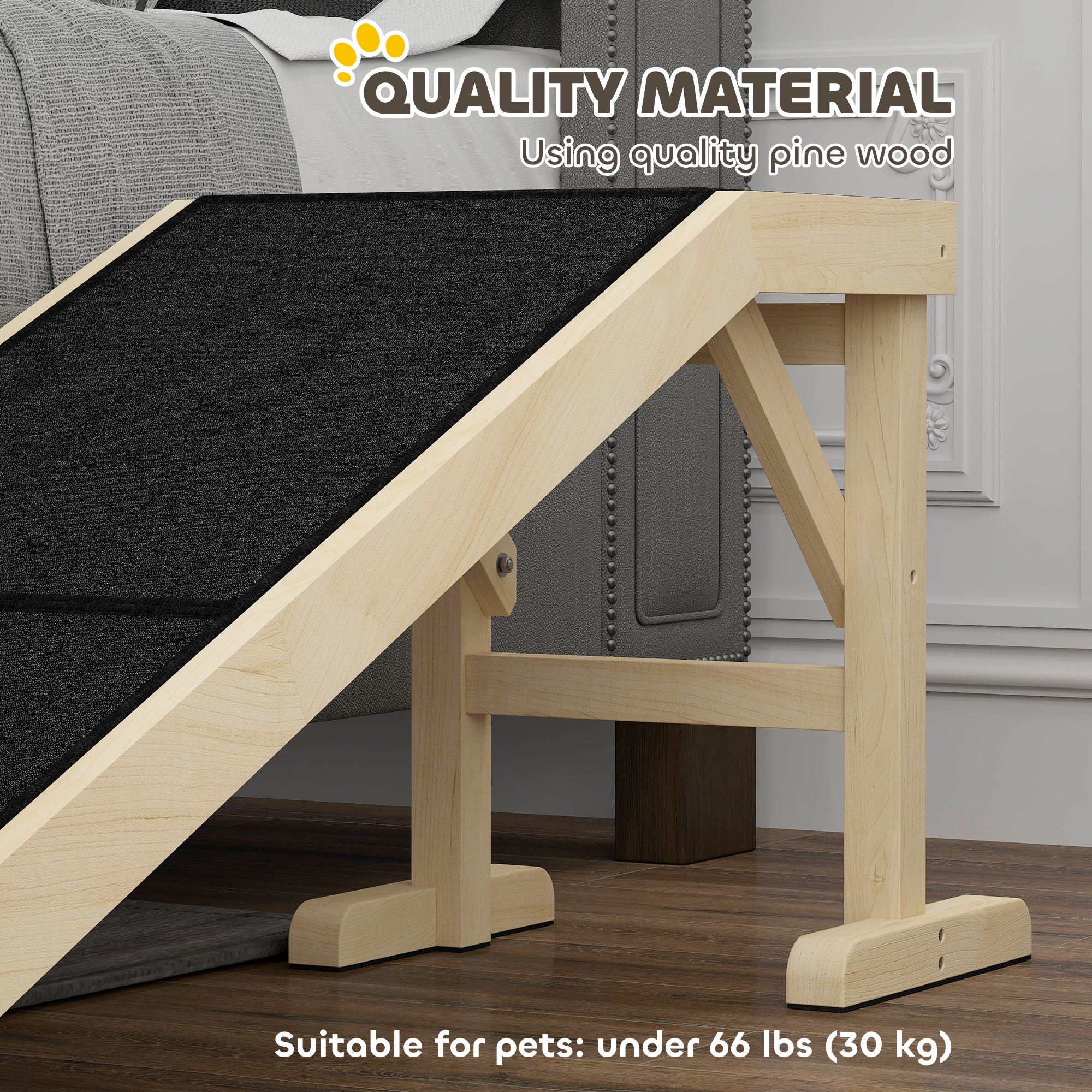 Pet Ramp Bed Steps for Dogs Cats Non-slip Carpet Top Platform Pine Wood 59"L x 16"W x 20"H Natural Wood