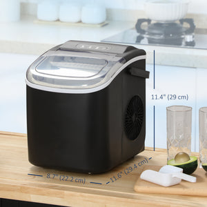 Portable Ice Maker Countertop with Handle, Self Cleaning Ice Maker Machine with Scoop and Basket, 26lbs/24Hrs, Black