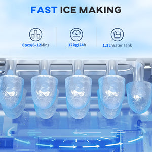 - • Ice Production: 26 lbs (12 kg)/day, 9pcs/ 6-12minutes