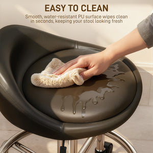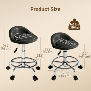 Slide into comfort with the Homivas rolling stool, your new favorite salon chair! Filled with thick foam and wrapped in easy-to-clean PU, it offers luxe comfort. Adjust the height from 23.2" to 29.5" to fit your workspace, whether it's a tattoo parlor or home office. Glide effortlessly on five universal wheels with 360 degrees swivel capability. Great for barbershops, bars, and more.