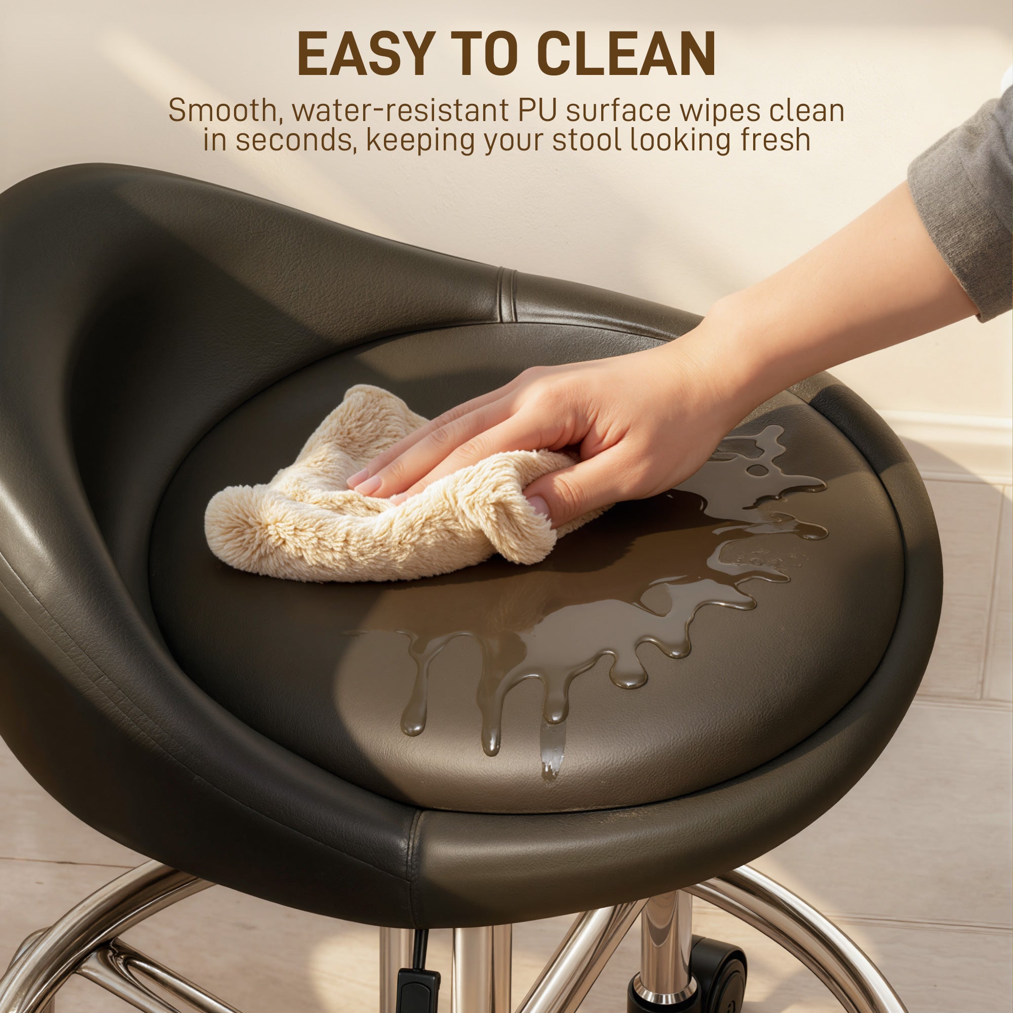 - • PU covering is water-resistant and easy to maintain