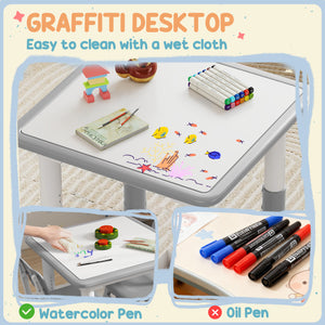 Qaba 3 Pieces Toddler Table and Chair Set, Height Adjustable Kids Table and Chair Set w/ Storage, for Playroom Grey