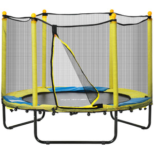 Qaba 4.6FT Trampoline for Kids with Enclosure Net for Ages 3-10, Indoor Outdoor Use, Yellow