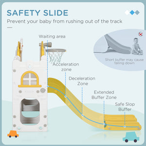 Qaba 7 in 1 Toddler Slide with Basketball Hoop, Climber, Telescope, Tunnel, Steering Wheel, for 1-3 Years, Yellow