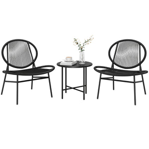 Rattan Bistro Set, 3 Pieces Wicker Patio Furniture Set, Acapulco Chairs and Steel Table for Porch, Balcony, Black