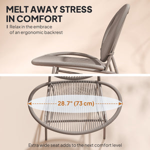 Relax, share a drink and have a chat with Homivas's outdoor bistro set, including two shell-like chairs and a round steel-top coffee table. The powder coated steel frames offer a strong core to all patio table and chairs, wrapped in protective round plastic wicker - a stylish outdoor patio set for your porch or balcony. 110° sloping backrest and extra wide seat make this patio conversation set a cozy corner for relaxing. Acapulco-like string weaving adds bistro vibes to your outdoor style.