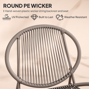 Rattan Bistro Set, 3 Pieces Wicker Patio Furniture Set, Acapulco Chairs and Steel Table for Porch, Balcony, Light Grey