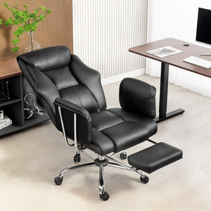 Reclining Office Chair, Overstuffed Executive Desk Chair with High Back, PU Leather, Footrest, Swivel Wheels, Black