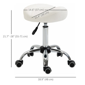 Saddle Stool, Height Adjustable Rolling Salon Chair with PU Leather for Massage, Spa, Clinic, Beauty and Tattoo, White