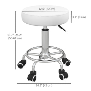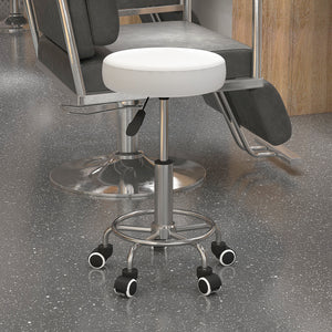 Salon Stool with Adjustable Height, PU Leather Barber Rolling Massage Tattoo Chair for Bar Beauty SPA, White