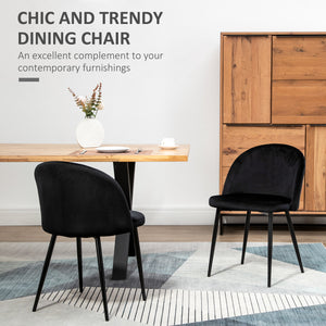 Set of 2 Mid-Back Dining Chair, Mid-Back Velvet-touch Upholstery Kitchen Chair for Living Room Dining Room, Black