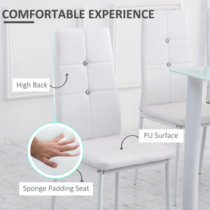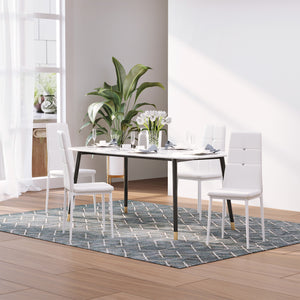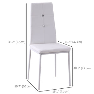Set of 4 Modern Style Dining Chairs, Button Tufted High Back Side Chairs with Upholstered Seat, Steel Legs, White