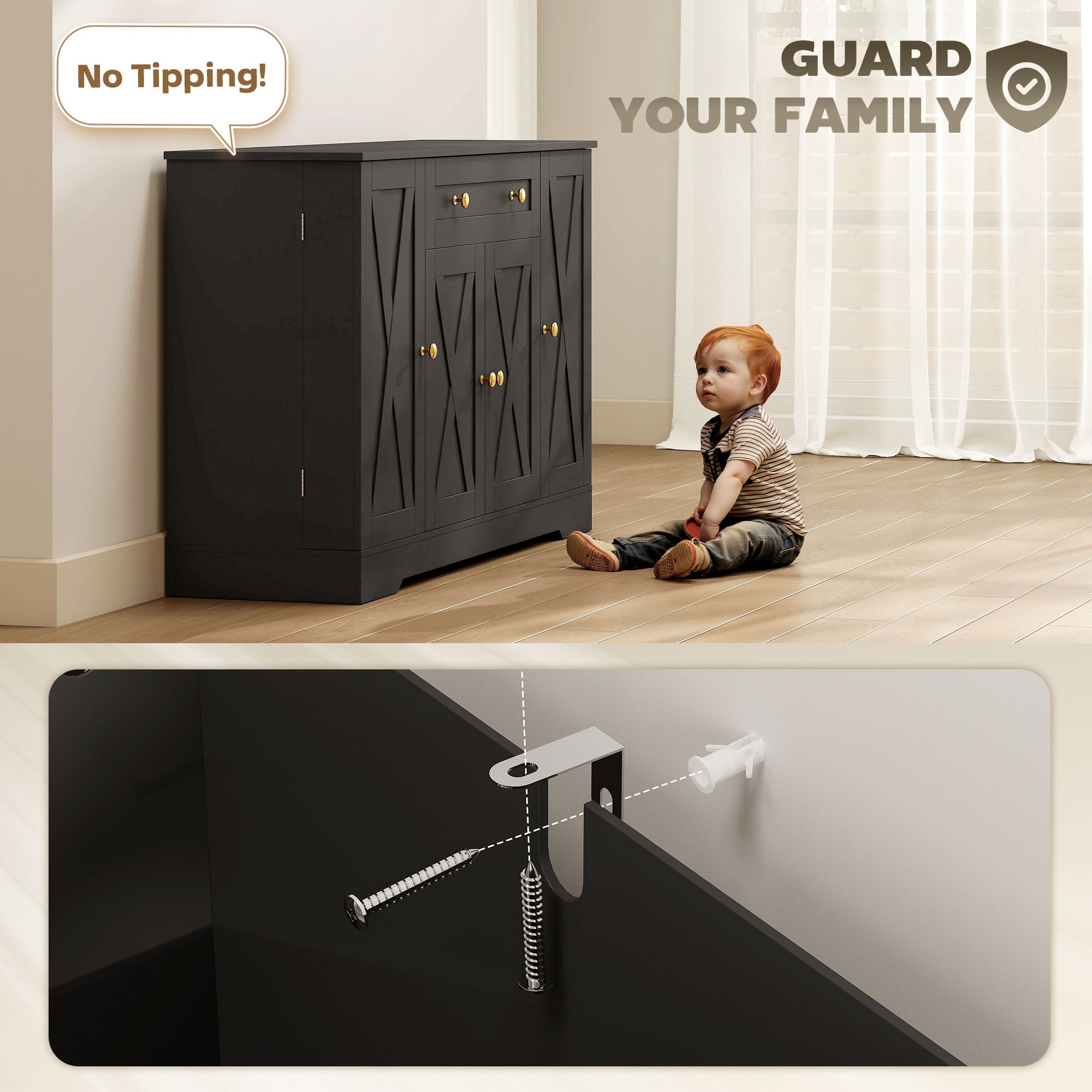 Bring charm and function into your home with this versatile buffet cabinet from Homivas. Thoughtfully designed with three roomy cabinets, a handy drawer, and side door shelves, you can say goodbye to food or dinnerware clutter. Adjustable shelves fit everything from tall bottles to small dishes. Barn-style doors add farmhouse warmth, while anti-tipping design offers everyday peace of mind. Ready for anywhere, from a coffee bar cabinet in the breakfast nook to a storage sideboard in the kitchen.