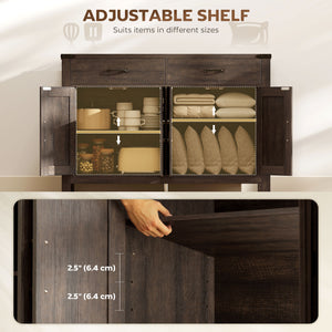 Sideboard Buffet Cabinet, Farmhouse Kitchen Storage Cabinet w/ 2 Drawers and Shelves for Living Room, Entryway