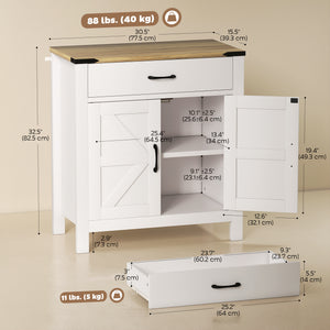 Sideboard Buffet Cabinet, Farmhouse Kitchen Storage Cabinet w/ Drawer and Shelf for Living Room, Entryway