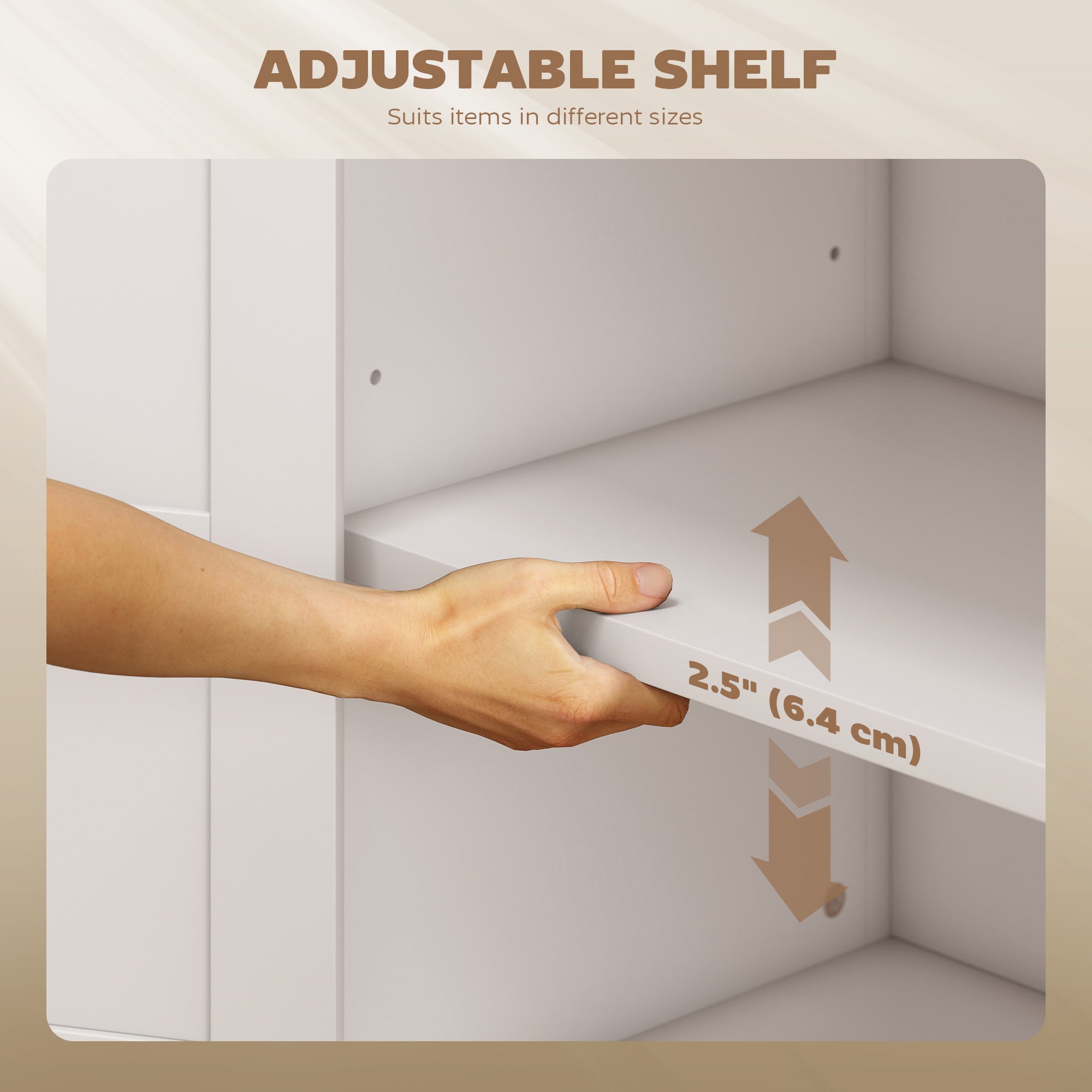 - • An adjustable shelf provides customized storage options
