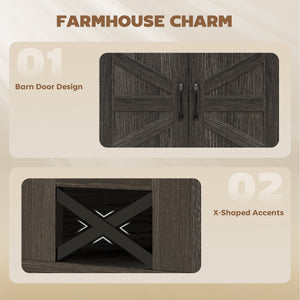- • Rustic farmhouse charm enhanced by barn door design
