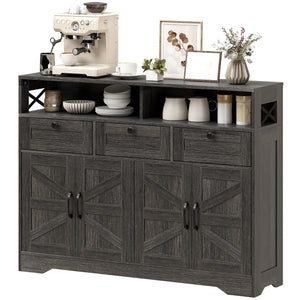 Sideboard, Buffet Cabinet with 4 Barn Doors and 3 Drawers, Coffee Bar Cabinet with Adjustable Shelves, Dark Brown