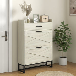 Slim Shoe Storage with 2 Flip Drawers and Adjustable Shelves Shoe Cabinet Organizer for 12 Pair, Distressed White