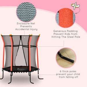 Soozier 63" Kids Trampoline Indoor with Enclosure Net Elastic Thick Padded Pole Gift for Ages 3-10 Years Old Red
