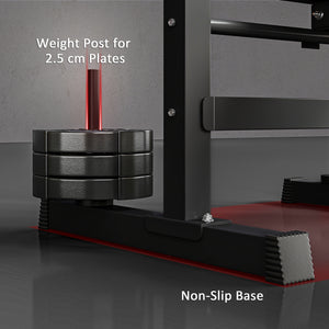 - • Max User Weight: 265lbs (120kg). Barbell rack: 220lbs (100kg). Each weight storage: 66lbs (30kg)
