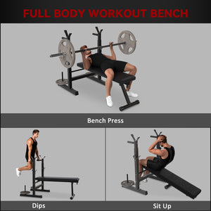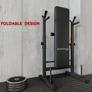 Soozier Adjustable Weight Bench, Foldable Bench Press with Barbell Rack and Dip Station for Home Gym, Strength Training Multiuse Workout Bench, Black