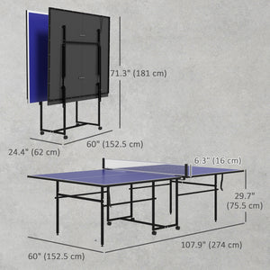 Soozier Full Size Table Tennis Table, Folding Ping Pong Table with Net, Paddles, Balls and Wheels, Blue