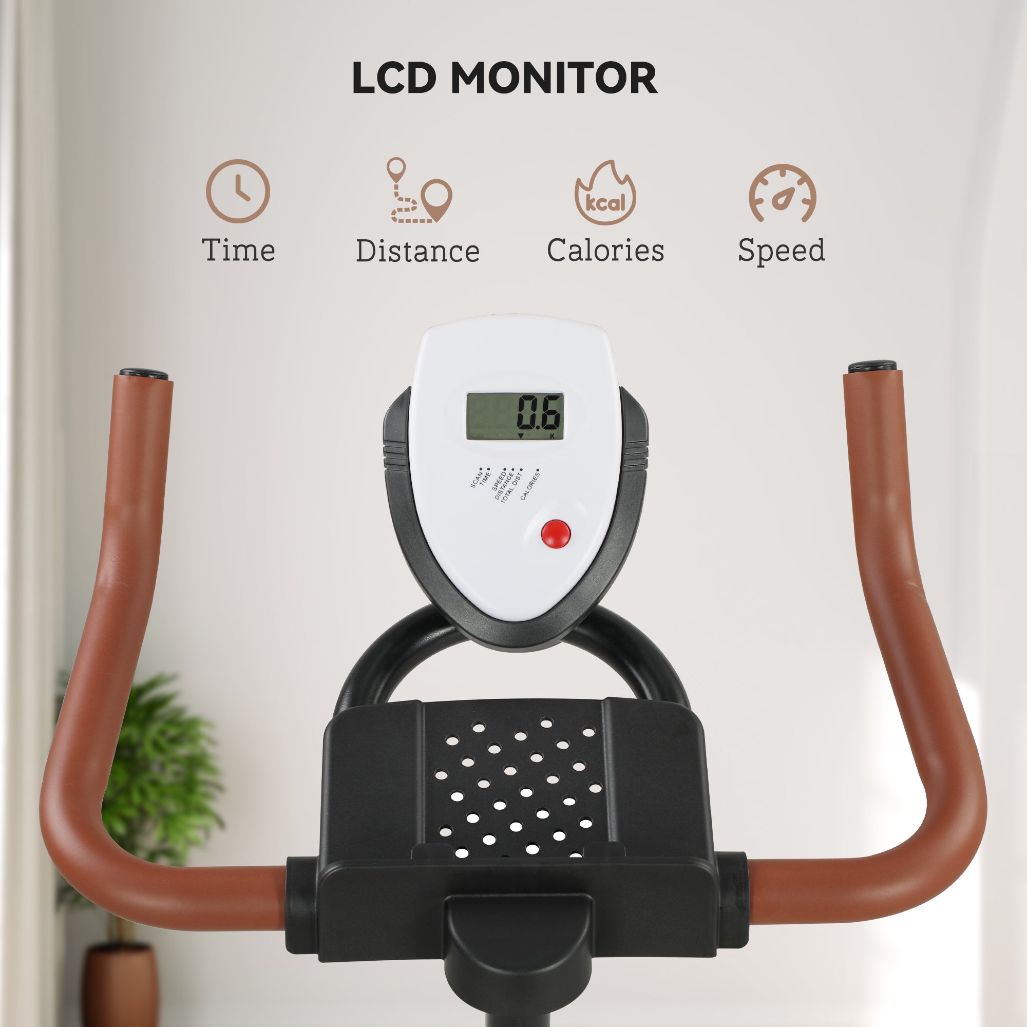 - • LCD monitor tracks your progress, while the tablet holder lets you have entertainment