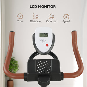 Achieve your fitness goals at home with the Soozier indoor cycling bike . Adjust the resistance to your comfort level – and increase it as you get stronger for a more intense workout. The seat and handlebar can also be adjusted to fit different heights, ensuring comfort. The LCD display shows time, distance and calories, helping you track your progress. Great for any home gym, its stylish design fits right in, while the built-in wheels make it easy to move wherever you want.