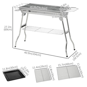 Stainless Steel Portable Charcoal Grill, Folding BBQ Grill with Shelf, Side Basket and Pan for Cooking, Camping, Travel