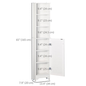 Check out this superbly designed contemporary tall bathroom storage cabinet from Homivas! With a chic shutter door and interior height-adjustable shelving, this small cabinet can easily fit in narrow spaces while providing plenty of storage. The bathroom cabinet is made of P2-grade MDF material that is stable and natural. Furthermore, this freestanding cabinet is versatile, allowing you to place storage in places that are normally unusable due to size.