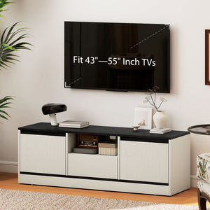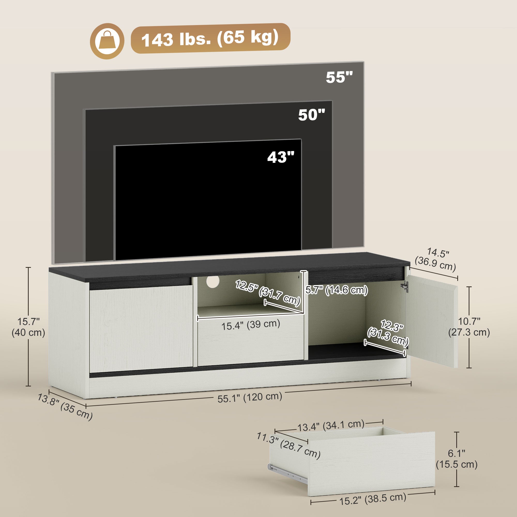 TV Stand for 43-55 Inch TV, Entertainment Center w/ Cabinets, Shelf, Drawer and Cable Management for Living Room, White